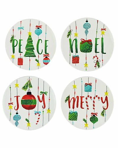 - Design details: set of 4 holiday plates feature Christmas “wishes” in multi-color designs
